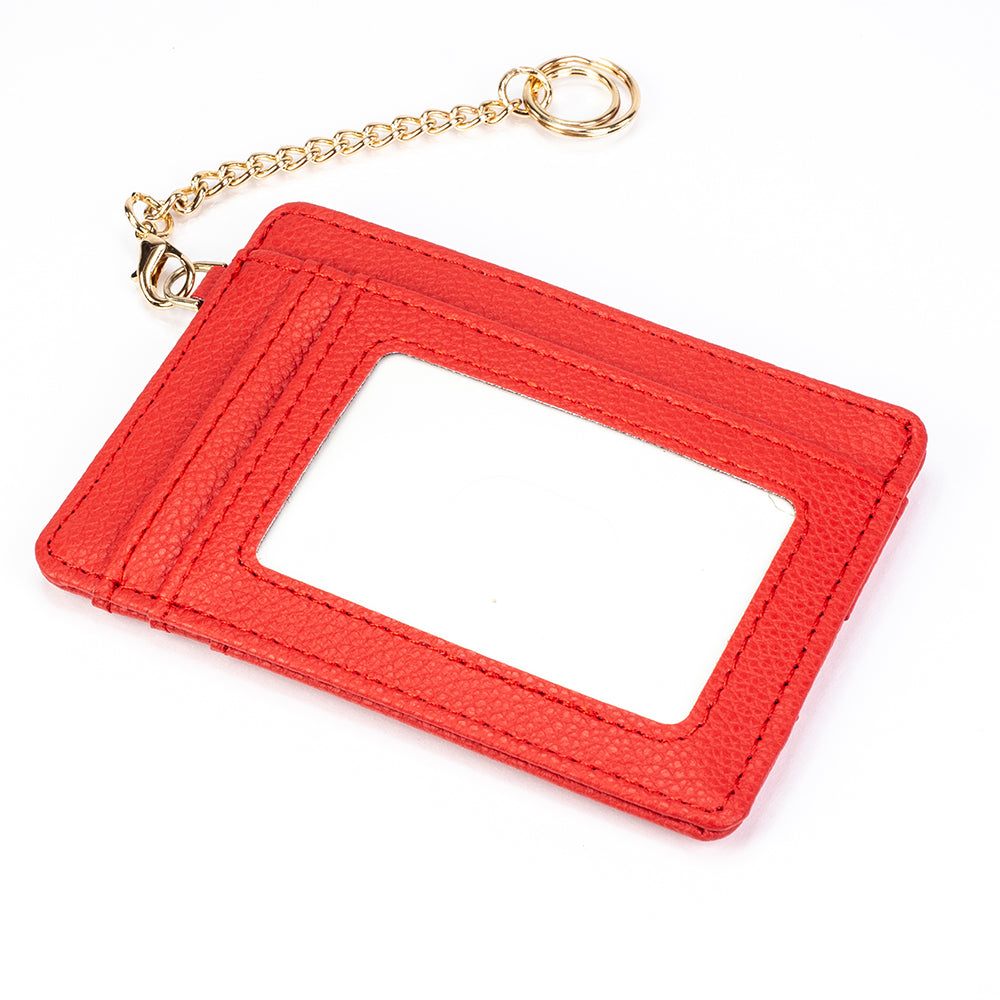 Sie verfügt über sieben Kartenfächer, ein transparentes Außenfach und ein Hauptfach für Bargeld und andere kleine Accessoires. Die Kette mit Schlüsselring dient gleichzeitig als praktisches Aufbewahrungsfach für Schlüssel.